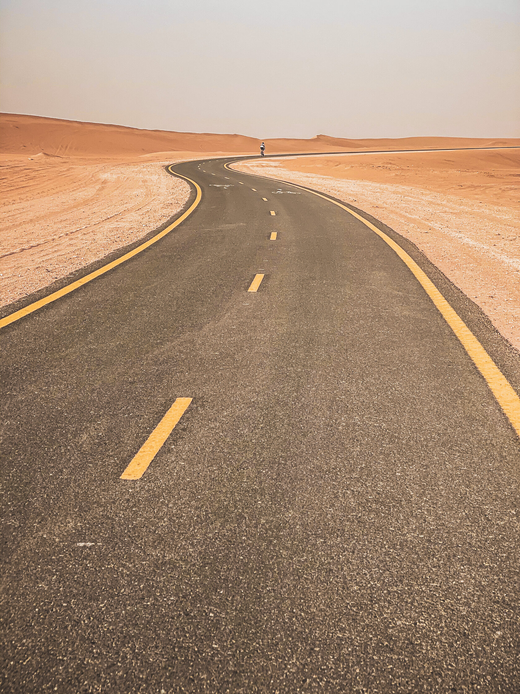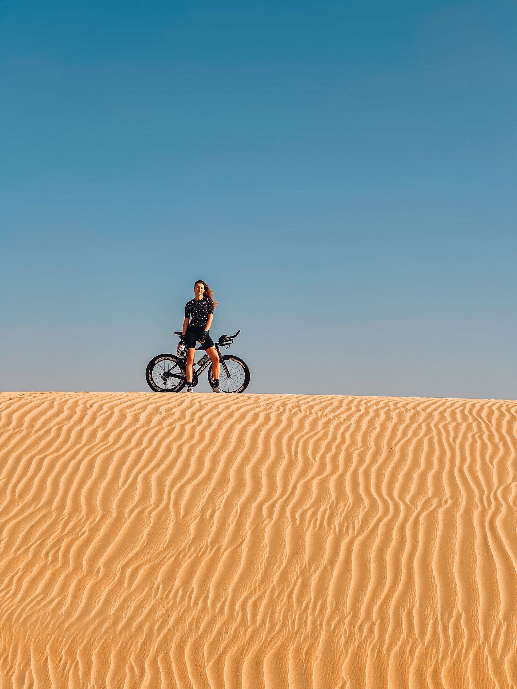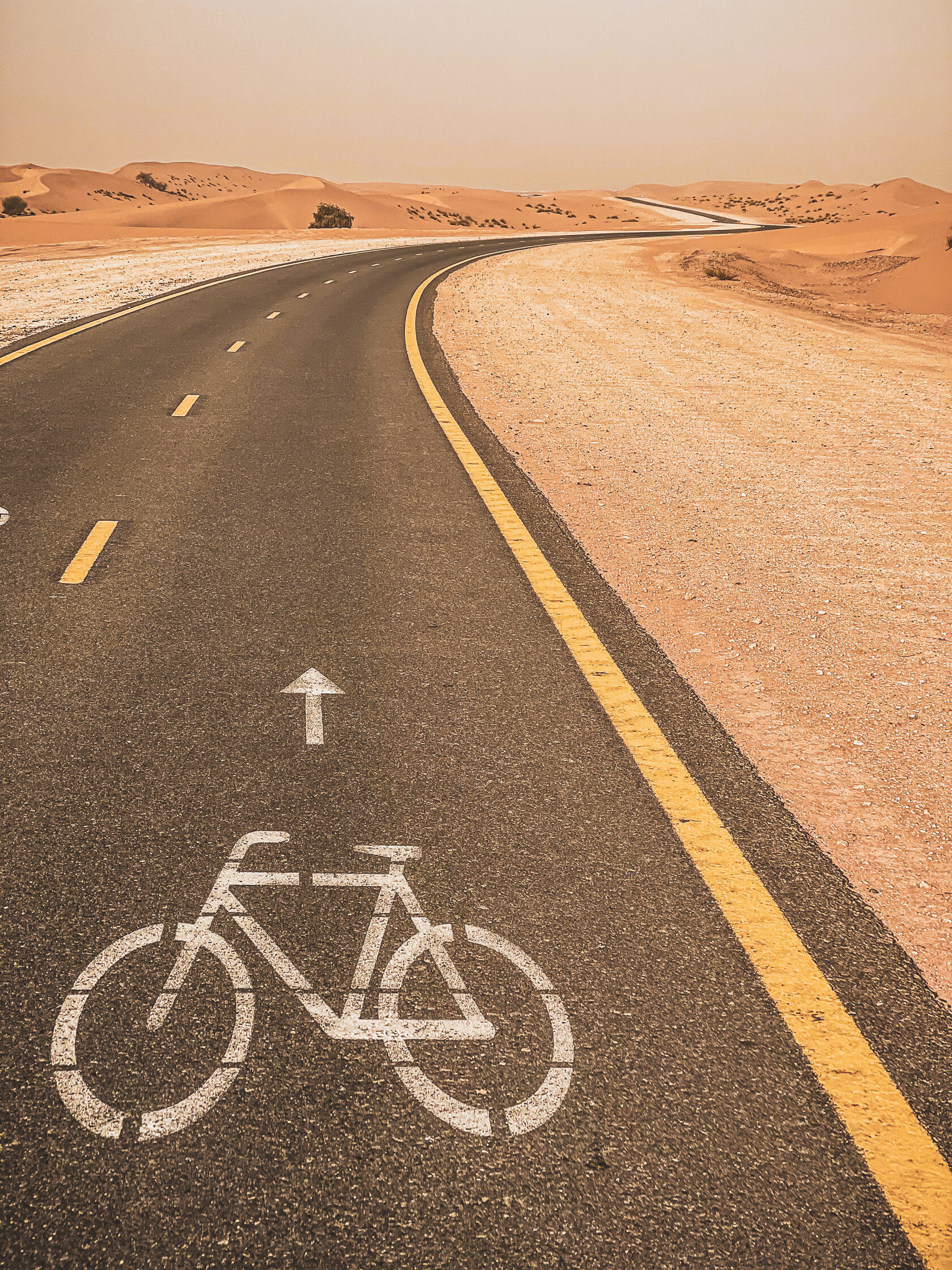 Пустыня Al Qudra. Едем на такси в пустыню на дальнюю парковку – это 40 минут в одну сторону. Снимаем в пустыне – на велодороге, в песке. Можно взять с собой сменную форму.
